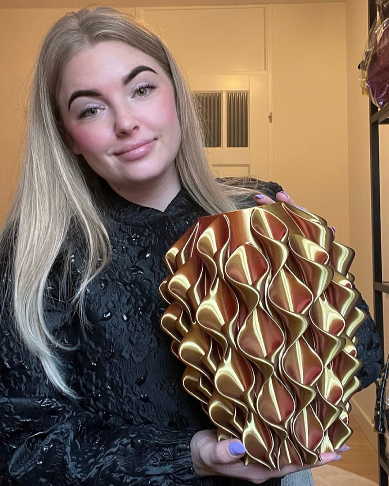 Gemaakt van PLA, een stevig en licht materiaal. Niet geschikt voor water. Plaats de vaas liever niet in direct zonlicht.